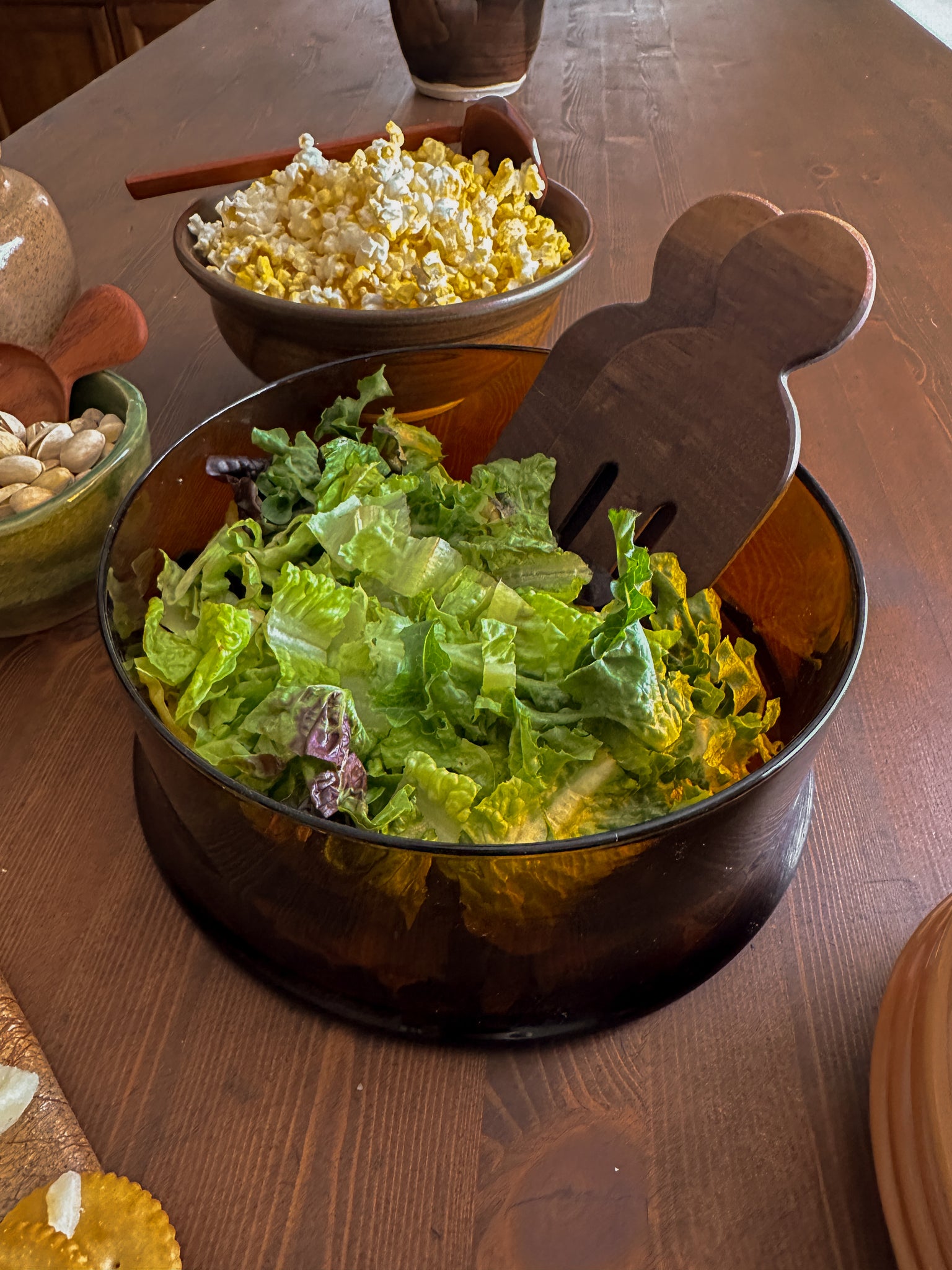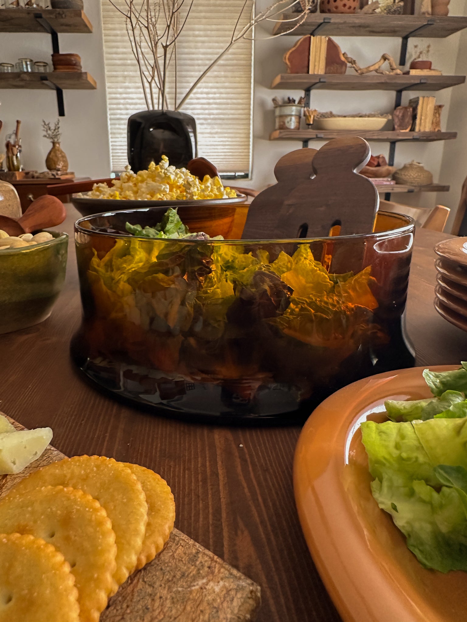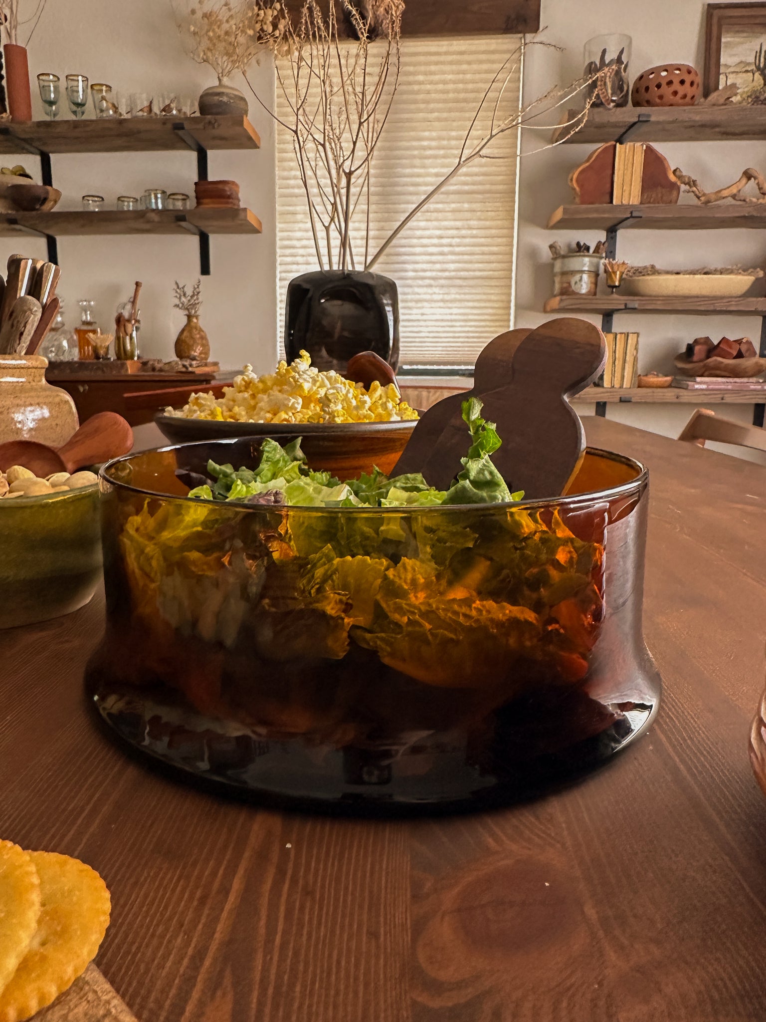 A gorgeous amber glass vessel that has a very modern silhouette. I love the idea of using it as a serving bowl for salads, pastas or other dishes.
