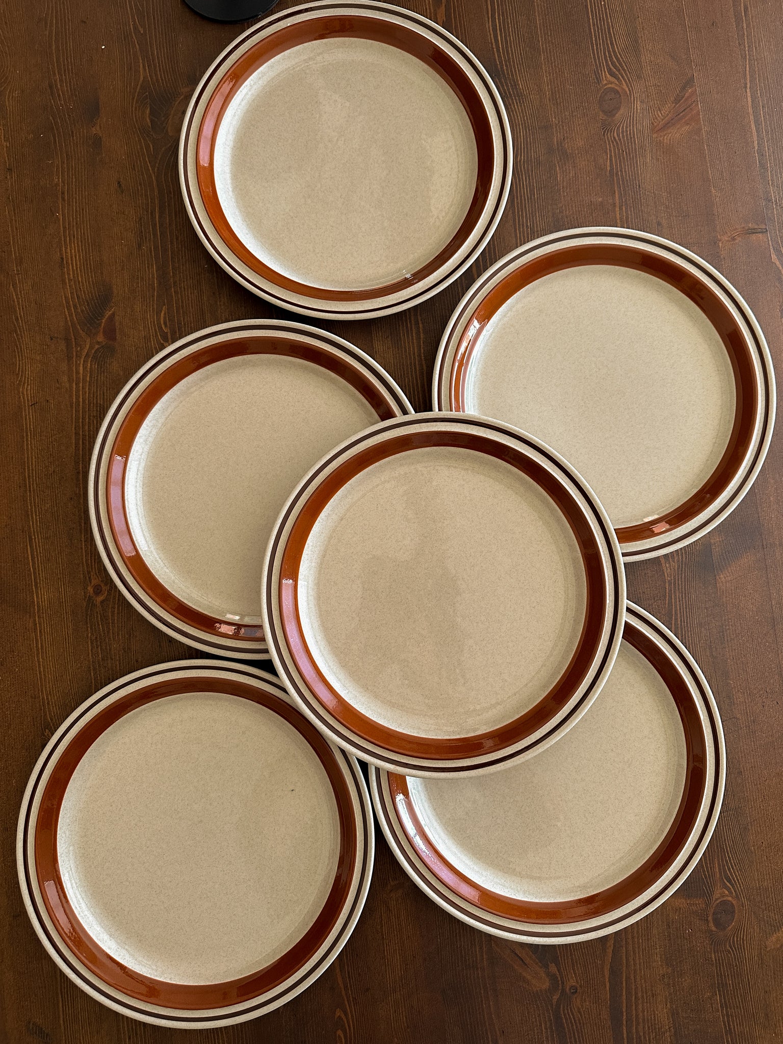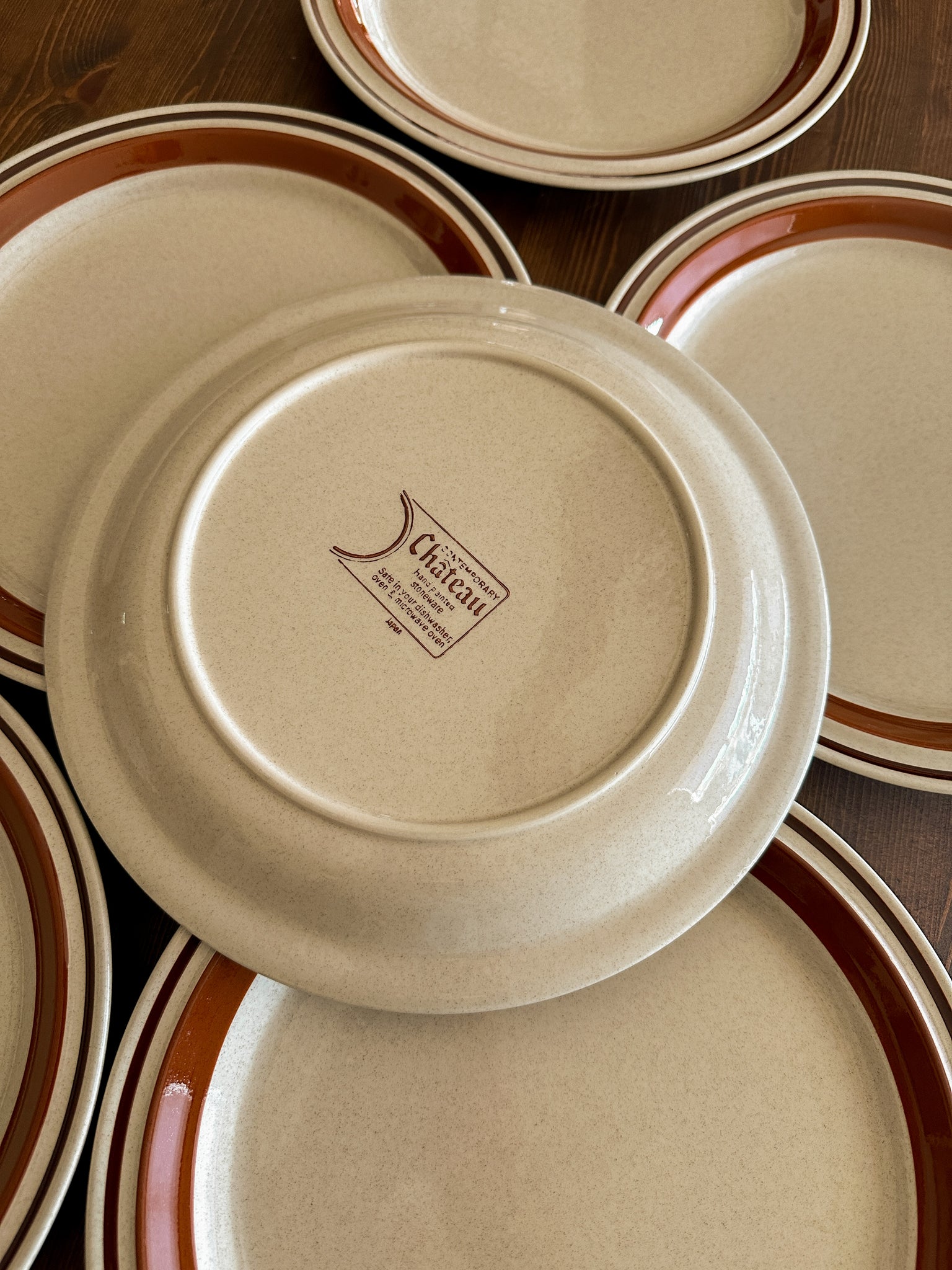 A set of 6 Contemporary by Yamaka Chateau brown dinner plates. These vintage plates were hand painted and made in Japan. The perfect set for your every day use.