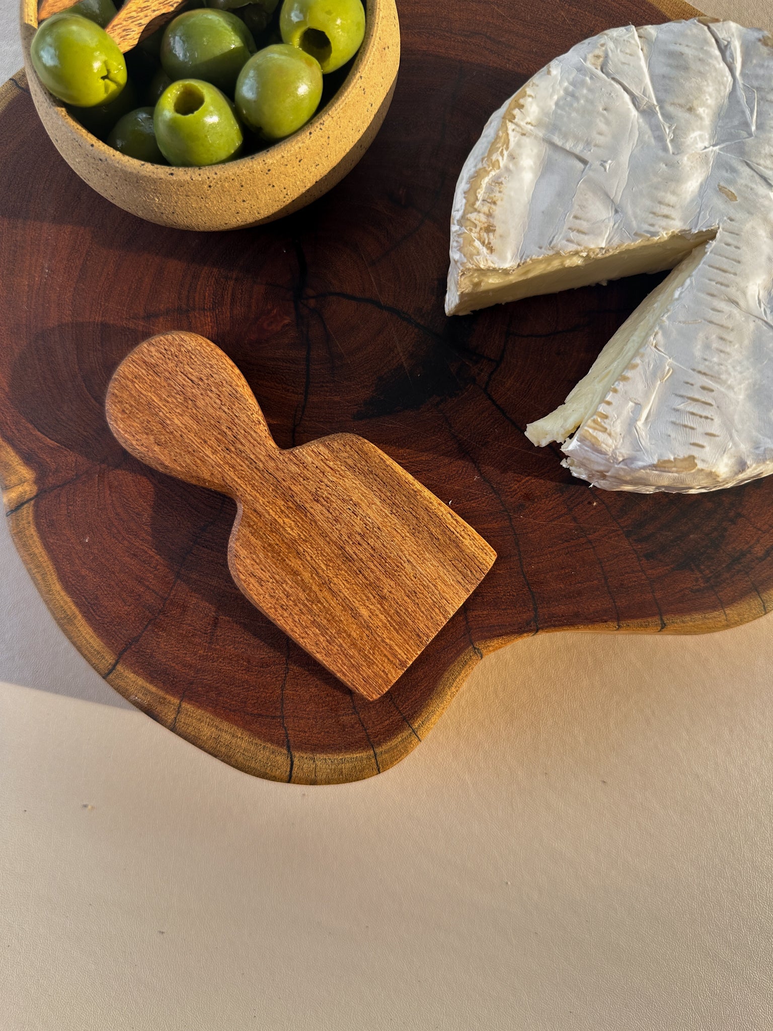 A hand crafted cheese slicer made of locally sourced mesquite. It is the perfect addition to your cheese spread to slice through the gouda, brie or goat cheese.